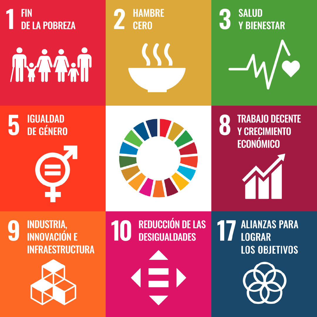 la AGENDA 2030 en: ODS 1 / ODS 2 / ODS 3 / ODS 5, meta 5 / ODS 8, meta 8.5 /